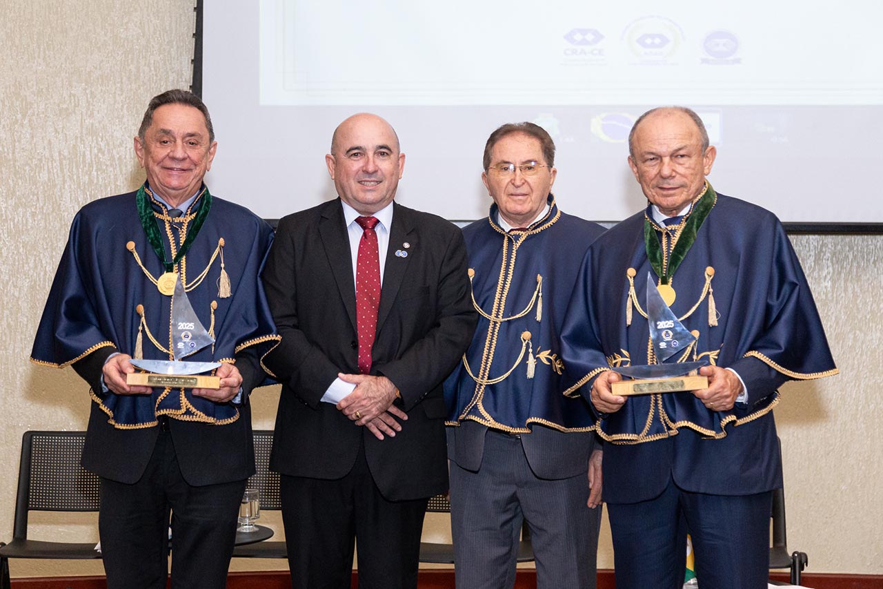 Os homenageados receberam o troféu das mãos do Presidente da ACAD, Adm. João Alves de Melo, e do Presidente do Conselho Federal de Administração (CFA), Adm. Leonardo Macedo, marcando um momento de grande simbolismo institucional para o Sistema CFA/CRAs.