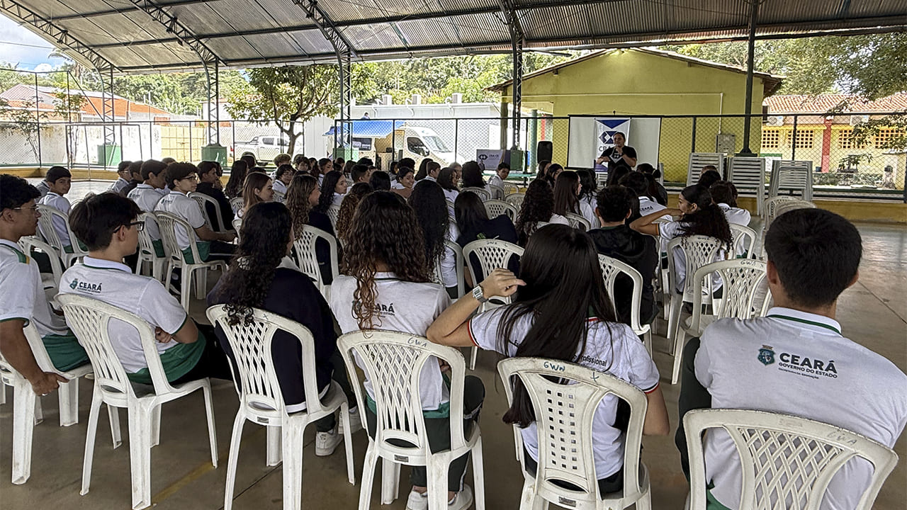 Na manhã do dia 10 de abril, o Conselho Regional de Administração do Ceará (CRA-CE), por meio do projeto CRA Itinerante, visitou a Escola Estadual de Educação Profissional (EEEP) Governador Waldemar Alcântara, no município de Ubajara. A programação contou com uma palestra ministrada pelo tecnólogo Giovane Vieira de Castro, diretor de Fiscalização e Registro do Conselho, que compartilhou conhecimentos e experiências com os estudantes da instituição.