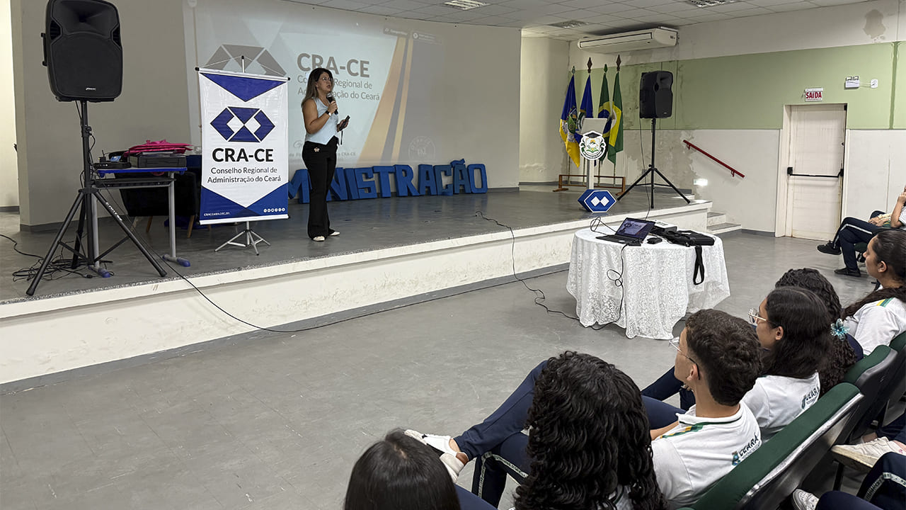 Durante o encontro, foram abordados temas relacionados à atuação profissional na área da Administração, destacando a importância da qualificação, do registro profissional e das oportunidades no mercado de trabalho para os futuros profissionais.